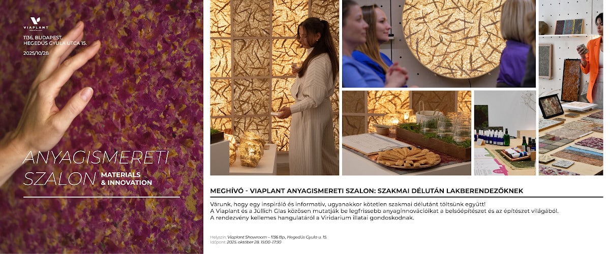 Helyszín: Viaplant Showroom – 1136 Budapest, Hegedűs Gyula u. 15.