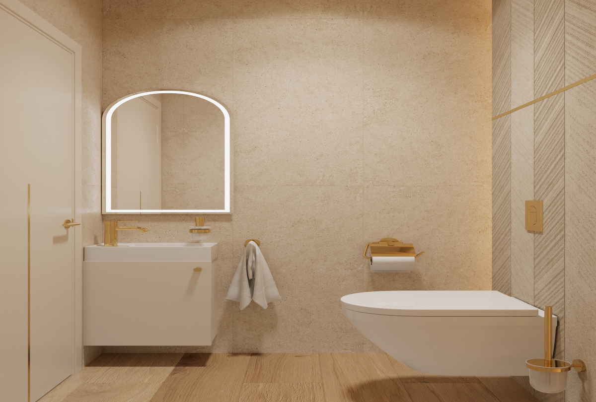 A munkálatok a régi padlóburkolat felbontásával, a nagy teremben egy gipszkarton válaszfal lebontásával, illetve a mosdóban és a fürdő részben a fali csempeburkolat leverésével kezdődtek, így kaptunk egy teljesen tiszta alapot. A beltéri ajtókat, valamint a bejárati ajtót is cserélni kellett, egyedül az álmennyezetet hagytuk meg a beépített világítás és a hűtő-fűtő klíma miatt.