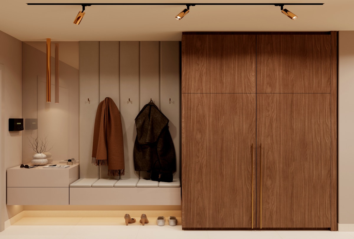 Csömörön, a legújabb tervezésemnél az ügyfél egyetlen kérése volt, hogy amikor a belső térbe lépünk, szülessen meg az a bizonyos „wow” érzés. Ennek megteremtéséhez a letisztult modern minimál alapot elegáns részletekkel gazdagítottam.