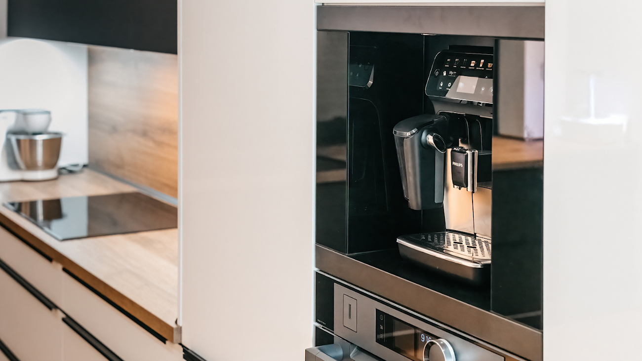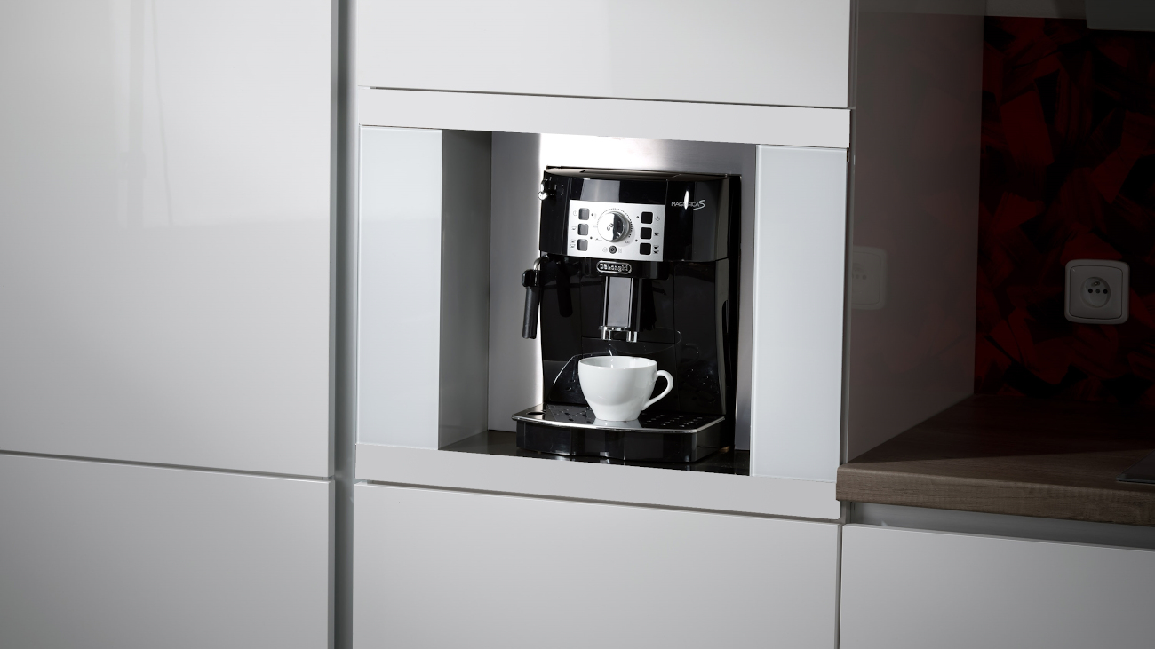 Ez egy beépíthető fiókmegoldás, amelybe szabadon álló kávéfőző helyezhető el, így a gép gyakorlatilag a bútorba integrálható. Ez az apró, de ötletes részlet nemcsak helyet spórol, hanem új esztétikai szintre emeli a kávézás élményét . Areggeli rituálé így válik a konyha természetes részévé.